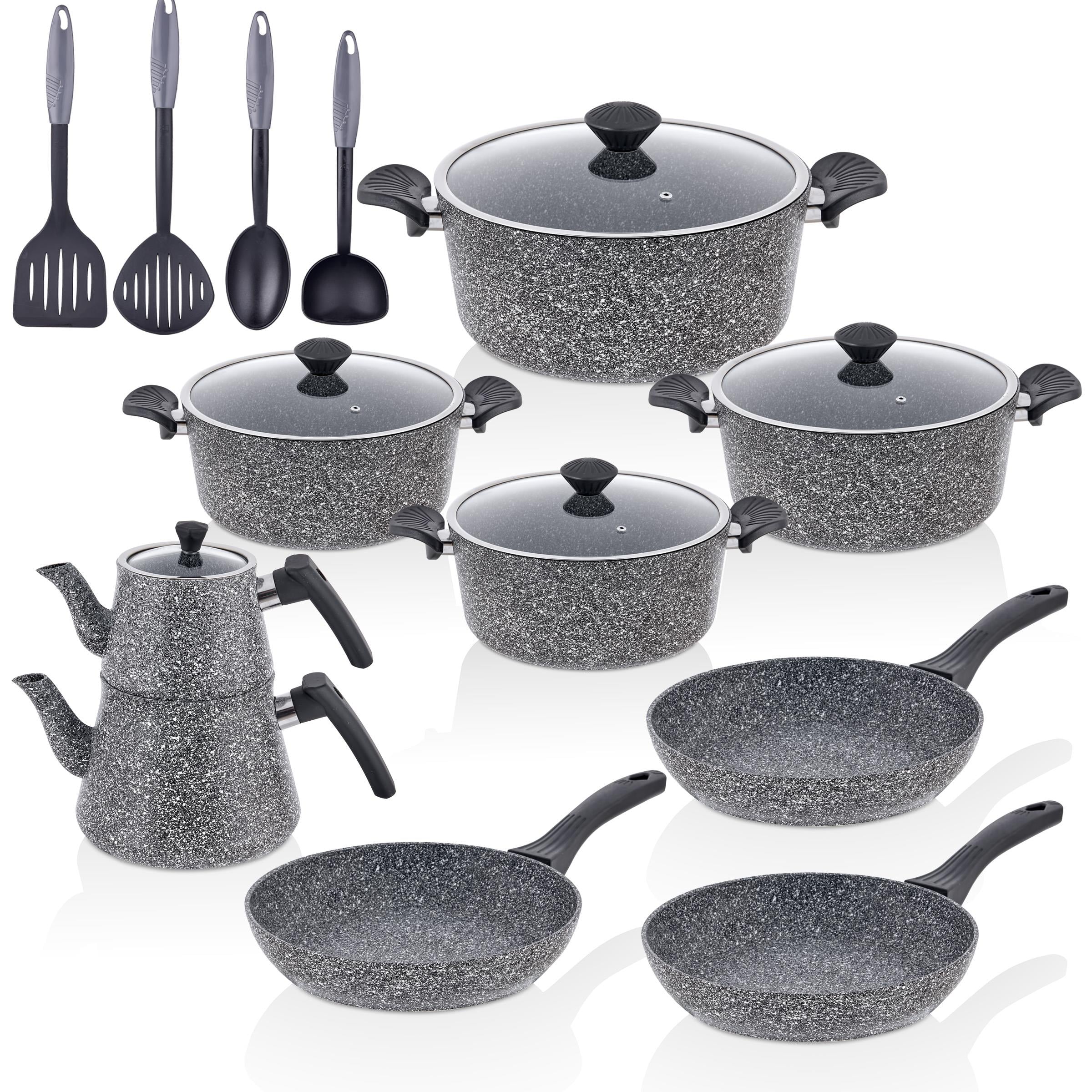 Geniş İçerik: Setin içeriğindeki farklı boyutlardaki tencereler ve tavalar, çeşitli pişirme ihtiyaçlarınıza cevap verir.